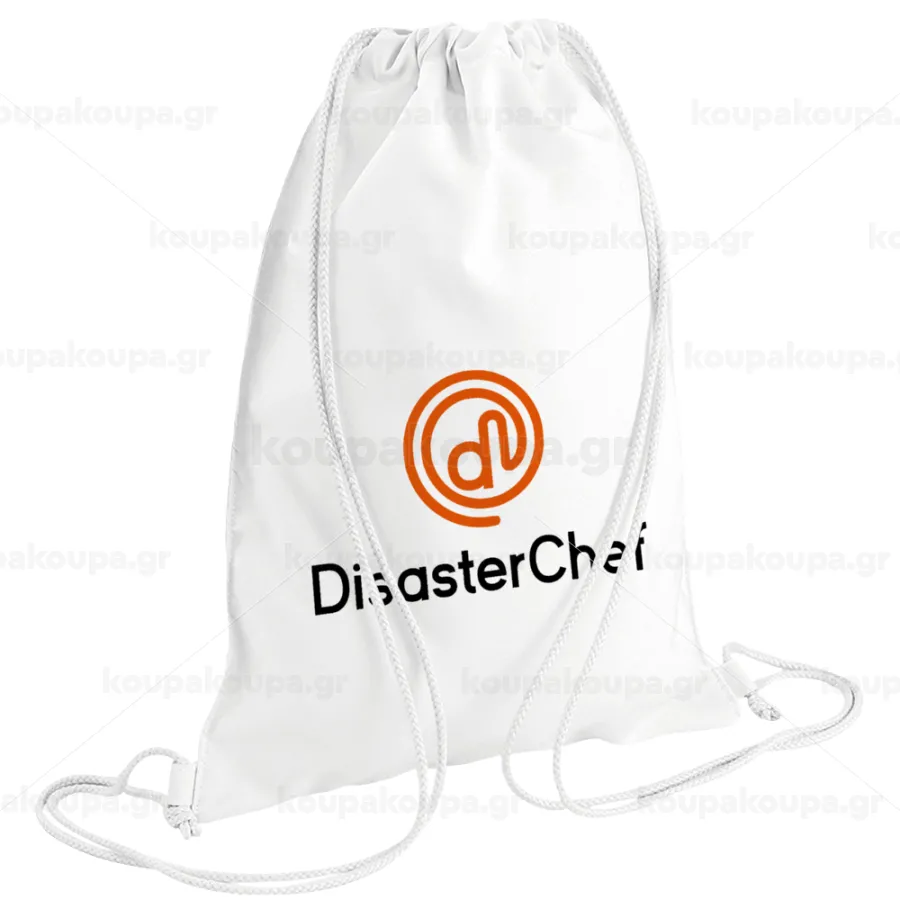 Disaster Chef, Τσάντα πλάτης πουγκί GYMBAG λευκή (28x40cm)