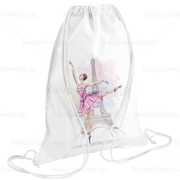 Αθλητική τσάντα πλάτης με διαστάσεις 28x40cm. Τα κορδόνια σύσφιξης μπορούν να τραβηχτούν για να κλείσουν την τσάντα και στη συνέχεια να χρησιμοποιηθούν ως ιμάντες ώμου για τη μεταφορά της τσάντας.