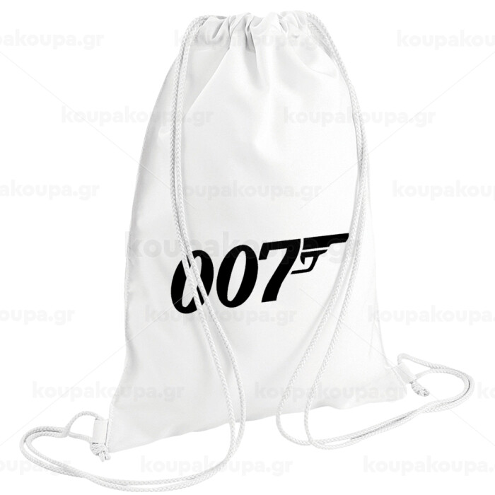 James Bond 007, Τσάντα πλάτης πουγκί GYMBAG λευκή (28x40cm)