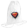Superman cracked, Τσάντα πλάτης πουγκί GYMBAG λευκή (28x40cm)