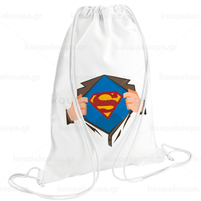 Superman hands, Τσάντα πλάτης πουγκί GYMBAG λευκή (28x40cm)