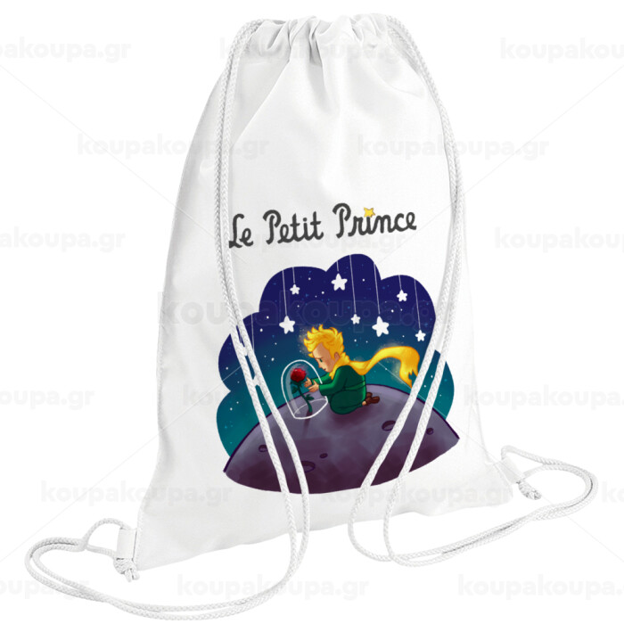 Ο μικρός πρίγκιπας, Τσάντα πλάτης πουγκί GYMBAG λευκή (28x40cm)
