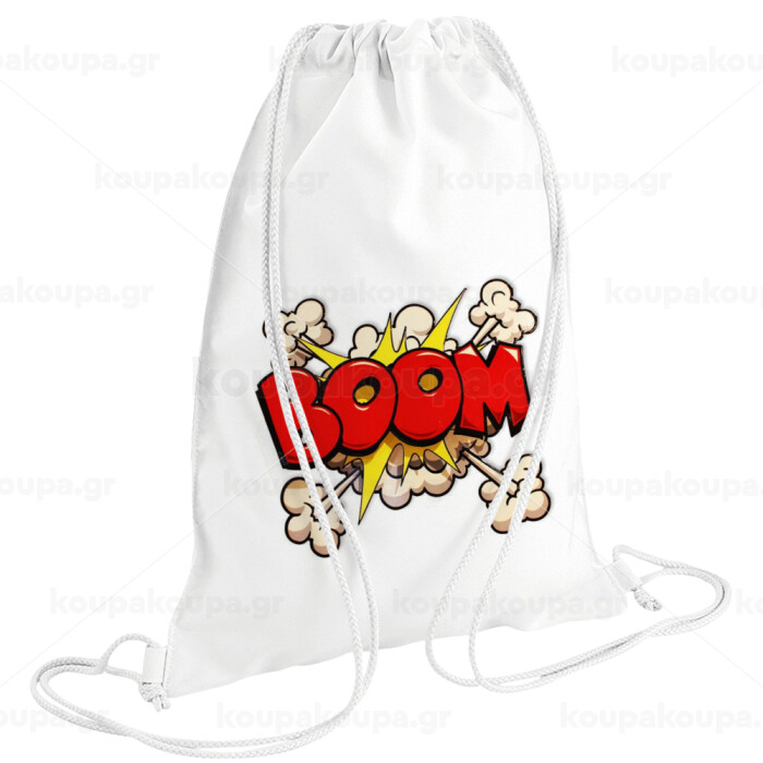 BOOM!!!, Τσάντα πλάτης πουγκί GYMBAG λευκή (28x40cm)