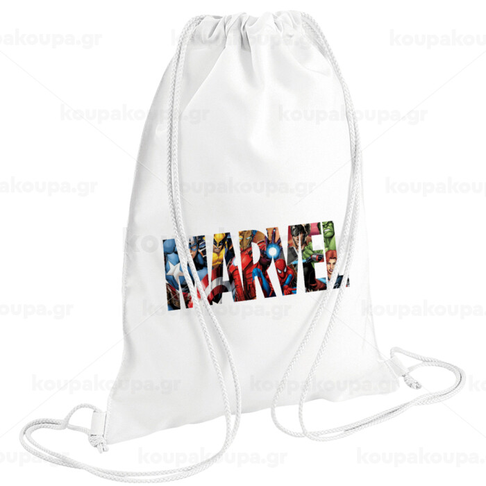 MARVEL characters, Τσάντα πλάτης πουγκί GYMBAG λευκή (28x40cm)