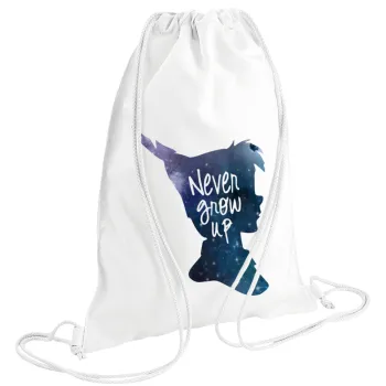 Never Grow UP, Τσάντα πλάτης πουγκί GYMBAG λευκή (28x40cm)
