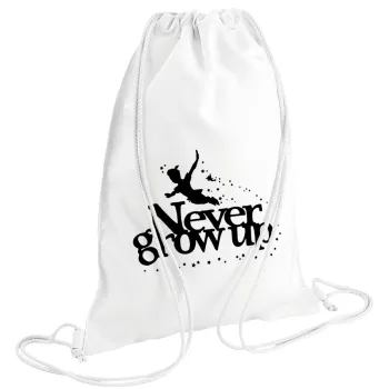 Peter pan, Never Grow UP, Τσάντα πλάτης πουγκί GYMBAG λευκή (28x40cm)