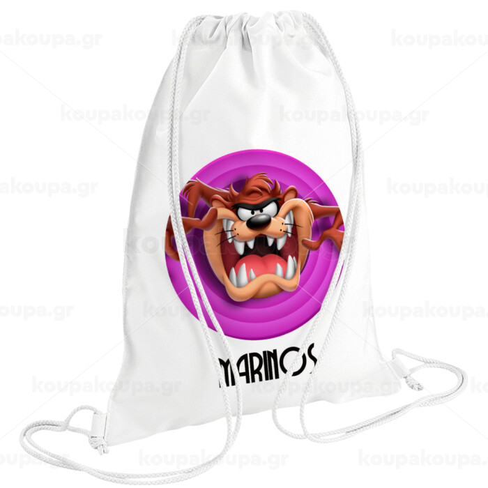 Taz, Τσάντα πλάτης πουγκί GYMBAG λευκή (28x40cm)