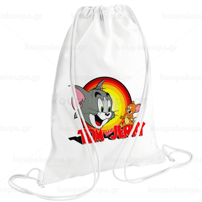 Tom and Jerry, Τσάντα πλάτης πουγκί GYMBAG λευκή (28x40cm)