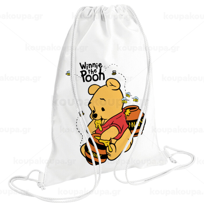 Γουίνι το Αρκουδάκι , Τσάντα πλάτης πουγκί GYMBAG λευκή (28x40cm)