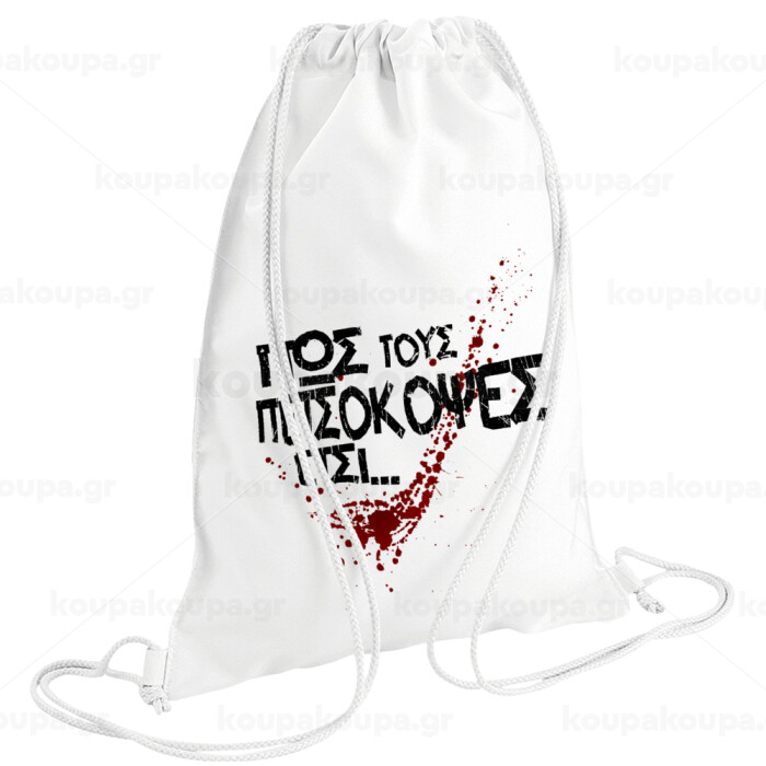 Πως τους πετσόκοψες έτσι..., Τσάντα πλάτης πουγκί GYMBAG λευκή (28x40cm)