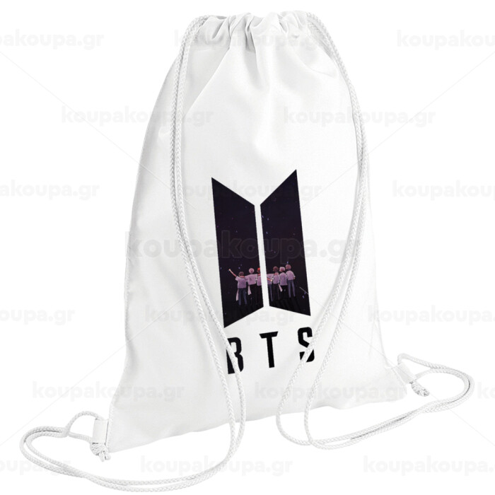 BTS, Τσάντα πλάτης πουγκί GYMBAG λευκή (28x40cm)