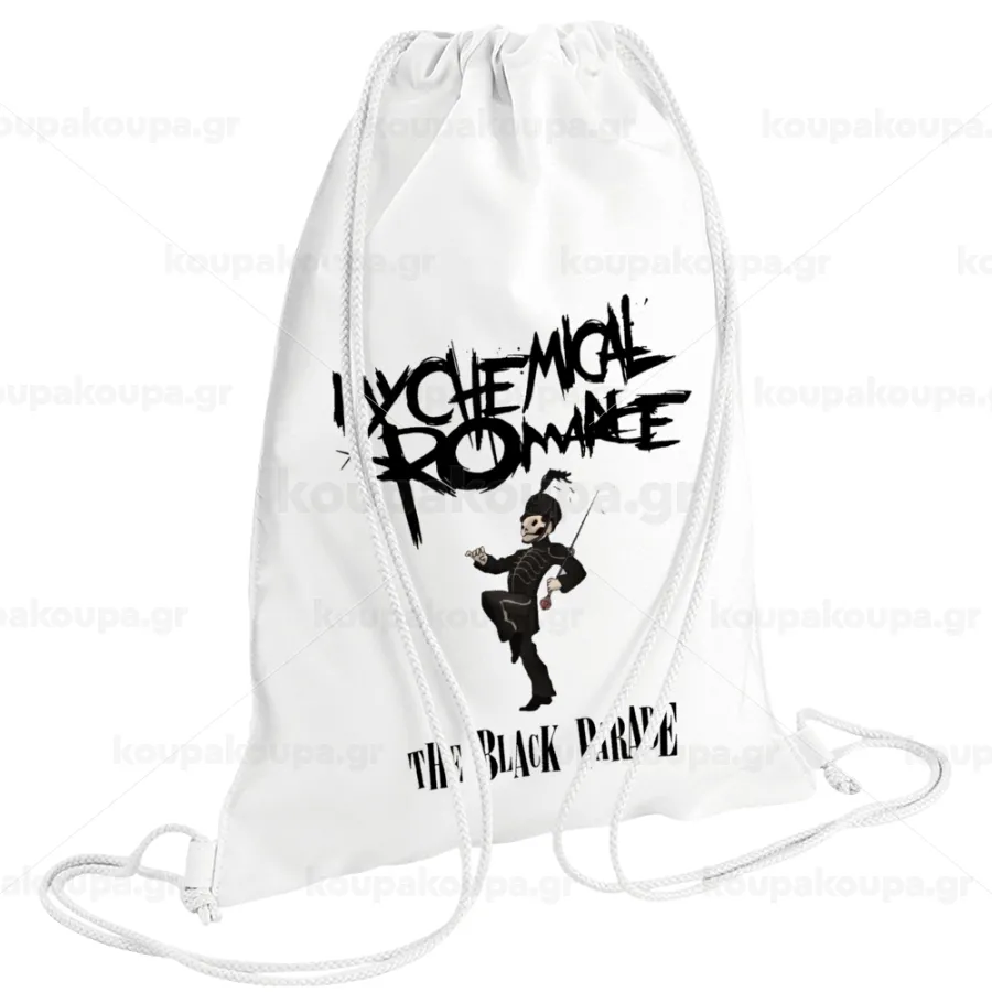 My Chemical Romance Black Parade, Τσάντα πλάτης πουγκί GYMBAG λευκή (28x40cm)