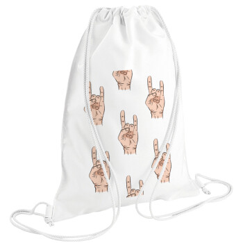 Rock hands, Τσάντα πλάτης πουγκί GYMBAG λευκή (28x40cm)