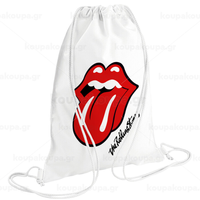 The rolling stones, Τσάντα πλάτης πουγκί GYMBAG λευκή (28x40cm)