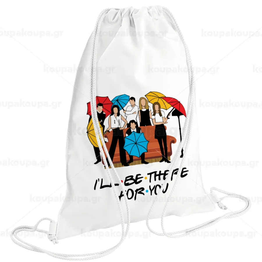 Friends cover, Τσάντα πλάτης πουγκί GYMBAG λευκή (28x40cm)