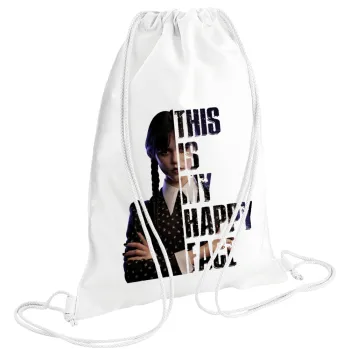 Wednesday, This is my happy face, Τσάντα πλάτης πουγκί GYMBAG λευκή (28x40cm)