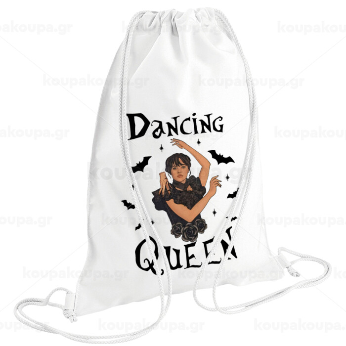 Wednesday Addams Dance, Τσάντα πλάτης πουγκί GYMBAG λευκή (28x40cm)