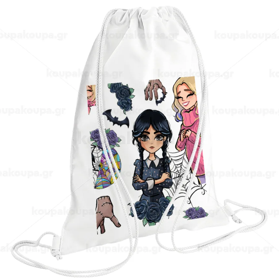 Wednesday and Enid Sinclair, Τσάντα πλάτης πουγκί GYMBAG λευκή (28x40cm)