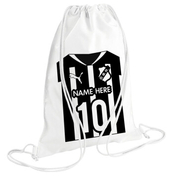 Αθλητική τσάντα πλάτης με διαστάσεις 28x40cm. Τα κορδόνια σύσφιξης μπορούν να τραβηχτούν για να κλείσουν την τσάντα και στη συνέχεια να χρησιμοποιηθούν ως ιμάντες ώμου για τη μεταφορά της τσάντας.