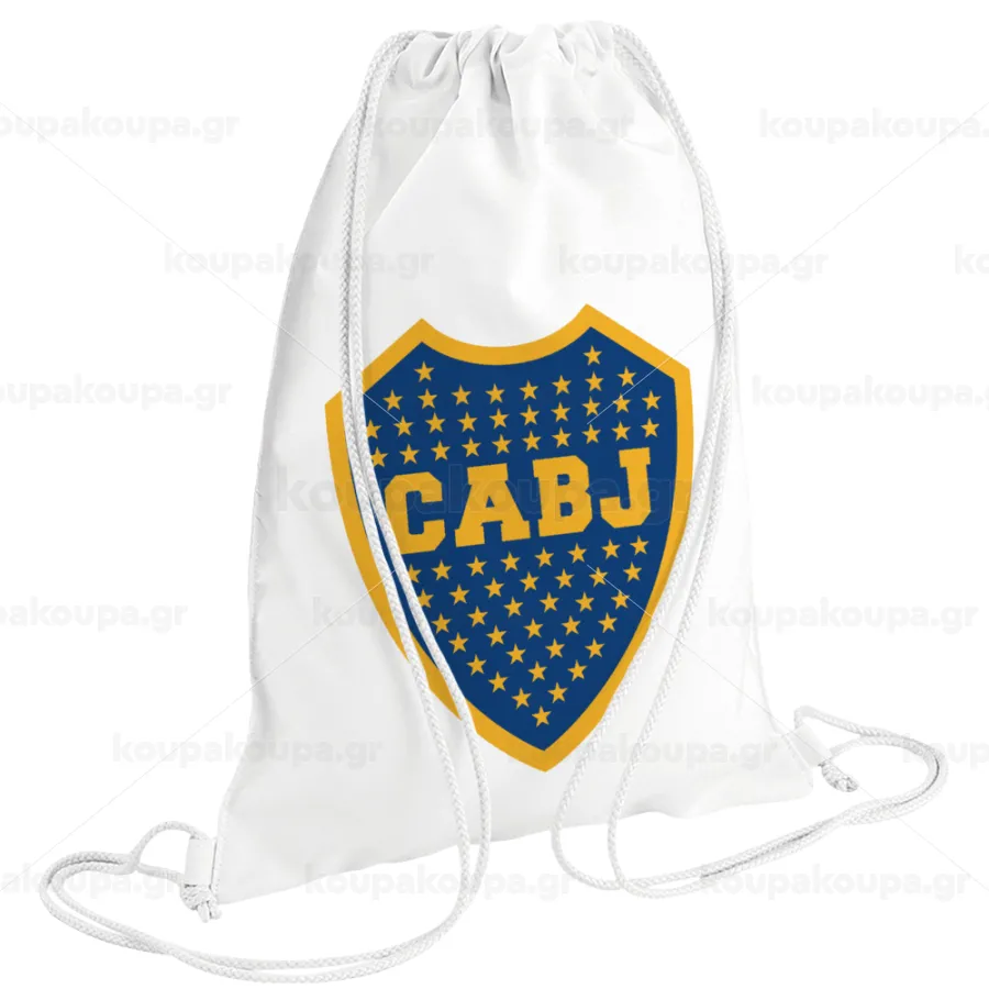 Club Atlético Boca Juniors, Τσάντα πλάτης πουγκί GYMBAG λευκή (28x40cm)