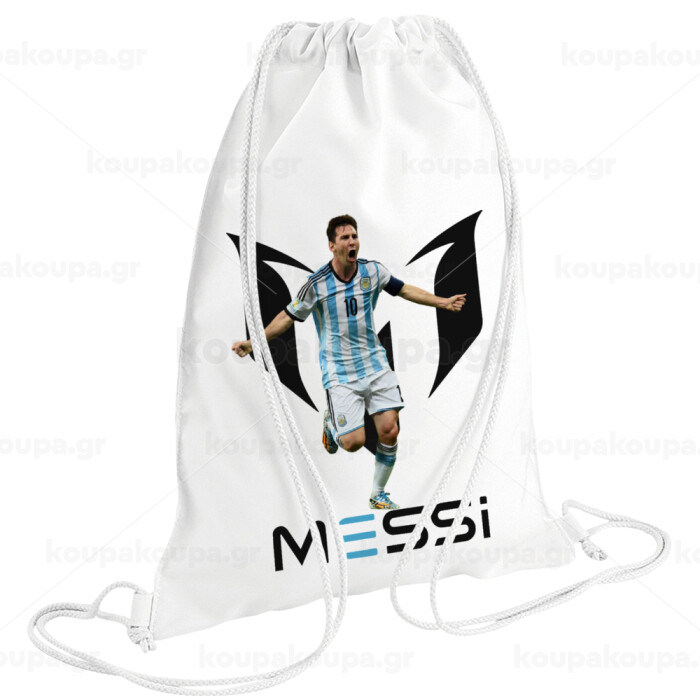 Λιονέλ Μέσι, Leo Messi, Τσάντα πλάτης πουγκί GYMBAG λευκή (28x40cm)