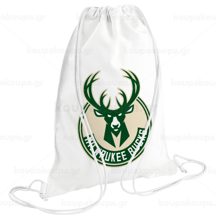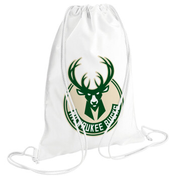 Milwaukee bucks, Τσάντα πλάτης πουγκί GYMBAG λευκή (28x40cm)