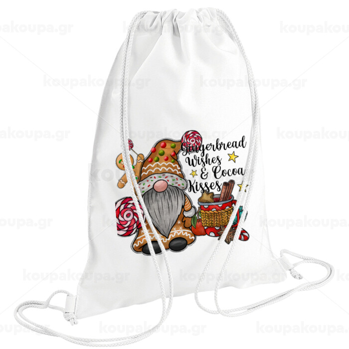Gingerbread Wishes, Τσάντα πλάτης πουγκί GYMBAG λευκή (28x40cm)