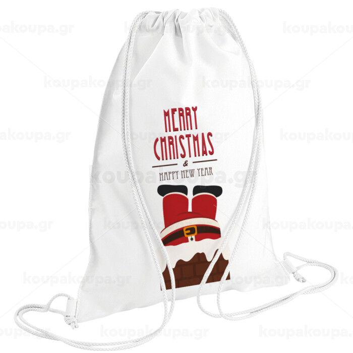 Merry christmas chimney, Τσάντα πλάτης πουγκί GYMBAG λευκή (28x40cm)