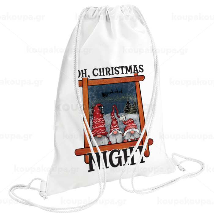 Oh Christmas Night, Τσάντα πλάτης πουγκί GYMBAG λευκή (28x40cm)