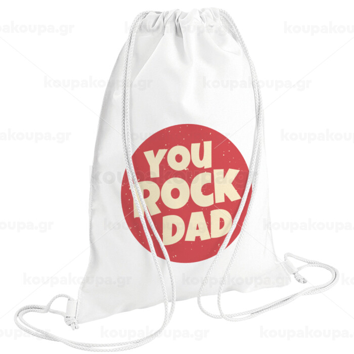 YOU ROCK DAD, Τσάντα πλάτης πουγκί GYMBAG λευκή (28x40cm)