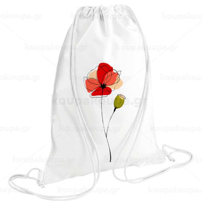 Red poppy flowers papaver, Τσάντα πλάτης πουγκί GYMBAG λευκή (28x40cm)