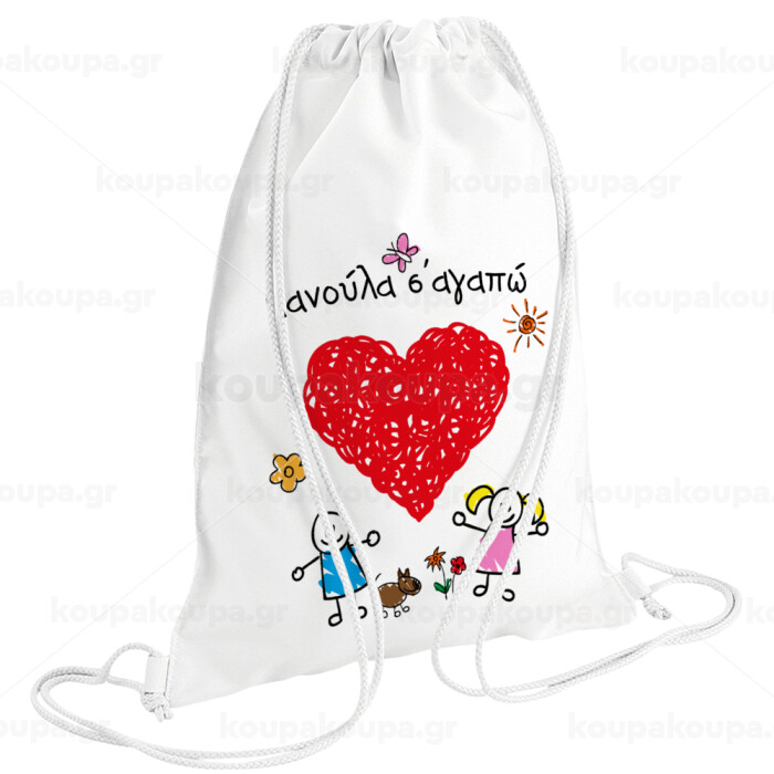 Μανούλα σ'αγαπώ!, Τσάντα πλάτης πουγκί GYMBAG λευκή (28x40cm)