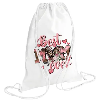 Best mom ever Mother's Day, Τσάντα πλάτης πουγκί GYMBAG λευκή (28x40cm)