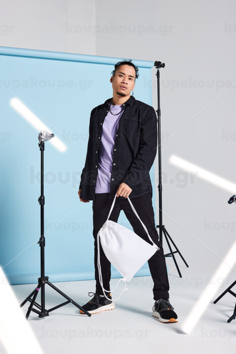 Αθλητική τσάντα πλάτης με διαστάσεις 28x40cm. Τα κορδόνια σύσφιξης μπορούν να τραβηχτούν για να κλείσουν την τσάντα και στη συνέχεια να χρησιμοποιηθούν ως ιμάντες ώμου για τη μεταφορά της τσάντας.
