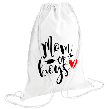 Mom of boys, Τσάντα πλάτης πουγκί GYMBAG λευκή (28x40cm)