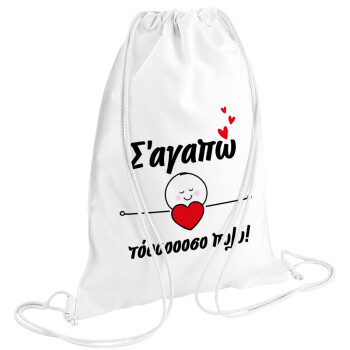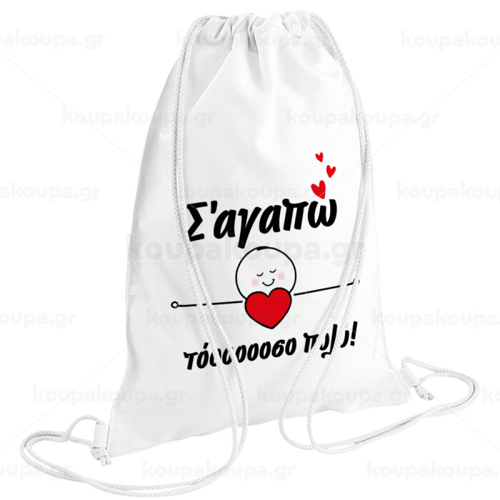 Σ΄αγαπώ τόοοοσο πολύ (Κορίτσι)!!!, Τσάντα πλάτης πουγκί GYMBAG λευκή (28x40cm)