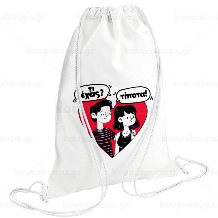 Τι έχεις? Τίποτα!, Τσάντα πλάτης πουγκί GYMBAG λευκή (28x40cm)