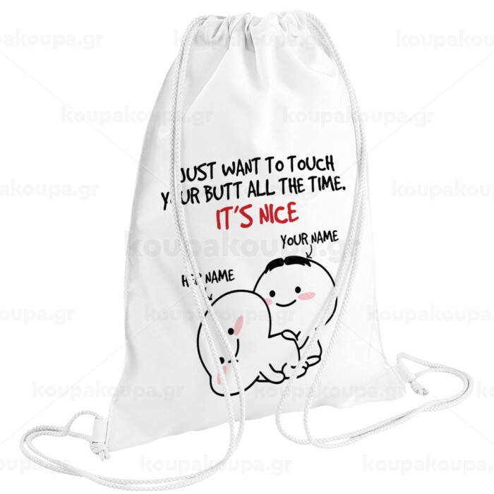 I Just Want To Touch Your Butt All The Time, Τσάντα πλάτης πουγκί GYMBAG λευκή (28x40cm)
