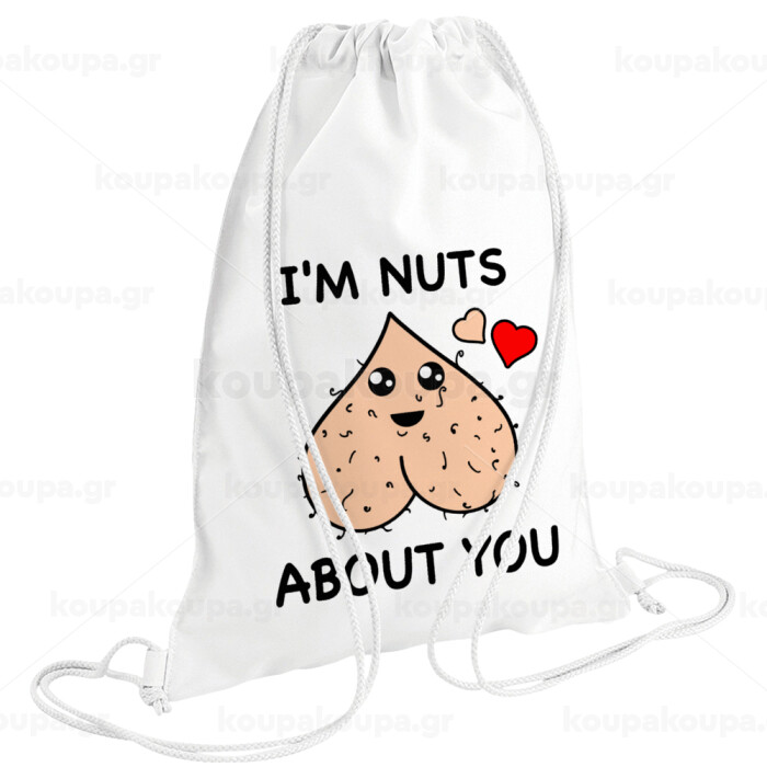 I'm Nuts About You, Τσάντα πλάτης πουγκί GYMBAG λευκή (28x40cm)