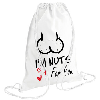 I'm Nuts for you, Τσάντα πλάτης πουγκί GYMBAG λευκή (28x40cm)
