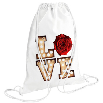 Love lights and roses, Τσάντα πλάτης πουγκί GYMBAG λευκή (28x40cm)