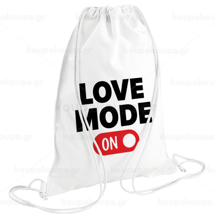 LOVE MODE ON, Τσάντα πλάτης πουγκί GYMBAG λευκή (28x40cm)