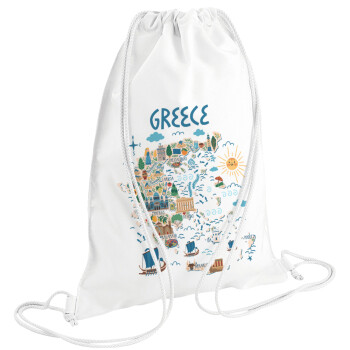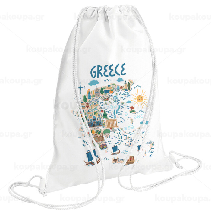 Χάρτης Ελλάδος, Τσάντα πλάτης πουγκί GYMBAG λευκή (28x40cm)