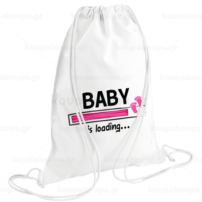 Baby is Loading GIRL, Τσάντα πλάτης πουγκί GYMBAG λευκή (28x40cm)