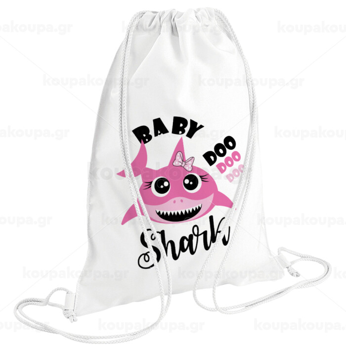 Baby Shark (girl), Τσάντα πλάτης πουγκί GYMBAG λευκή (28x40cm)
