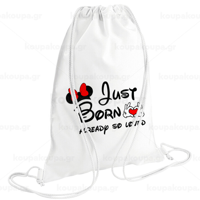 Just born already so loved, Τσάντα πλάτης πουγκί GYMBAG λευκή (28x40cm)