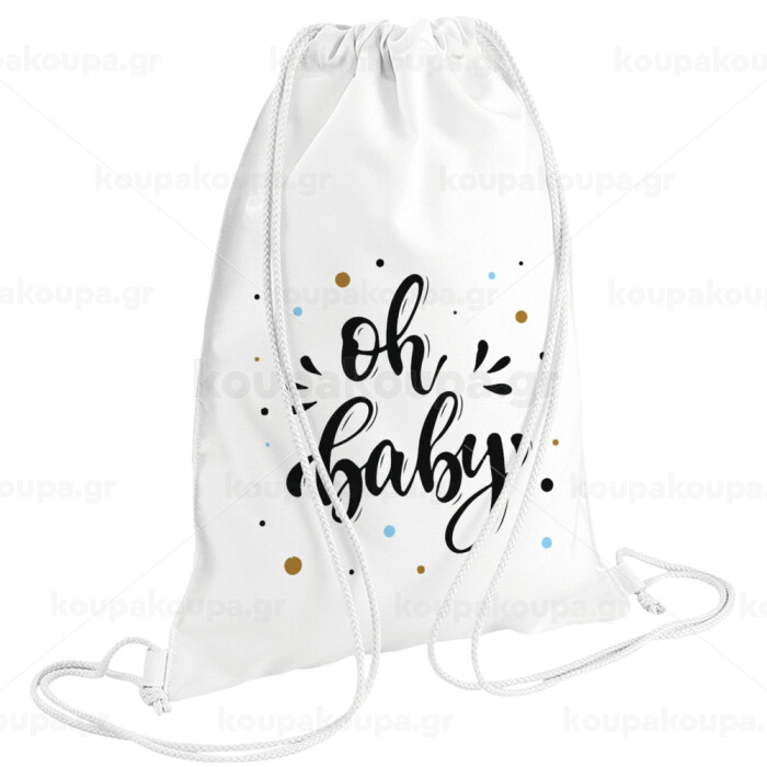 Oh baby, Τσάντα πλάτης πουγκί GYMBAG λευκή (28x40cm)