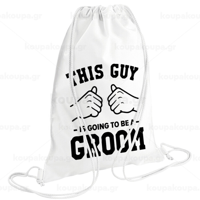 This Guy is going to be a GROOM, Τσάντα πλάτης πουγκί GYMBAG λευκή (28x40cm)