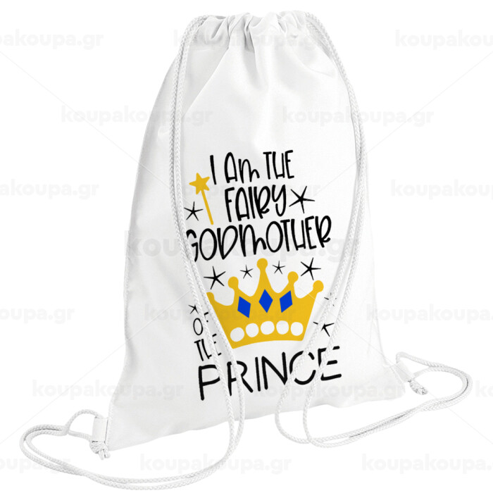 I am the fairy Godmother of the Prince, Τσάντα πλάτης πουγκί GYMBAG λευκή (28x40cm)