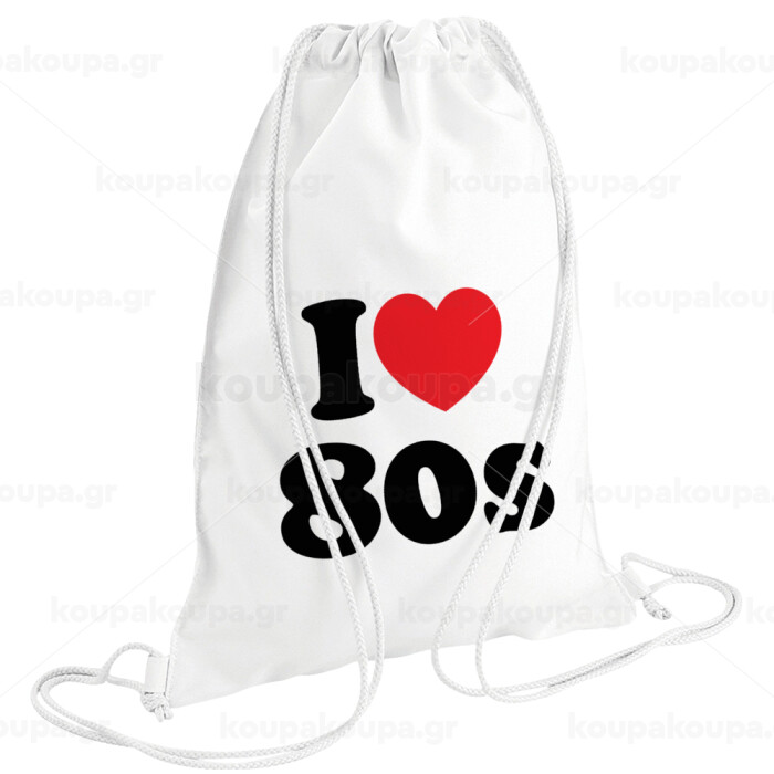 I Love 80s, Τσάντα πλάτης πουγκί GYMBAG λευκή (28x40cm)